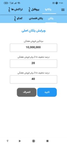 برنامه پلکانی پلکان فروش و تخفیف ها را برای همه فروشنده ها بر اساس زمانبندی هفتگی طراحی کرده است.